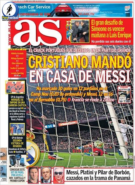 عناوین روزنامه آ.اس اسپانیا ۱۶ فروردین