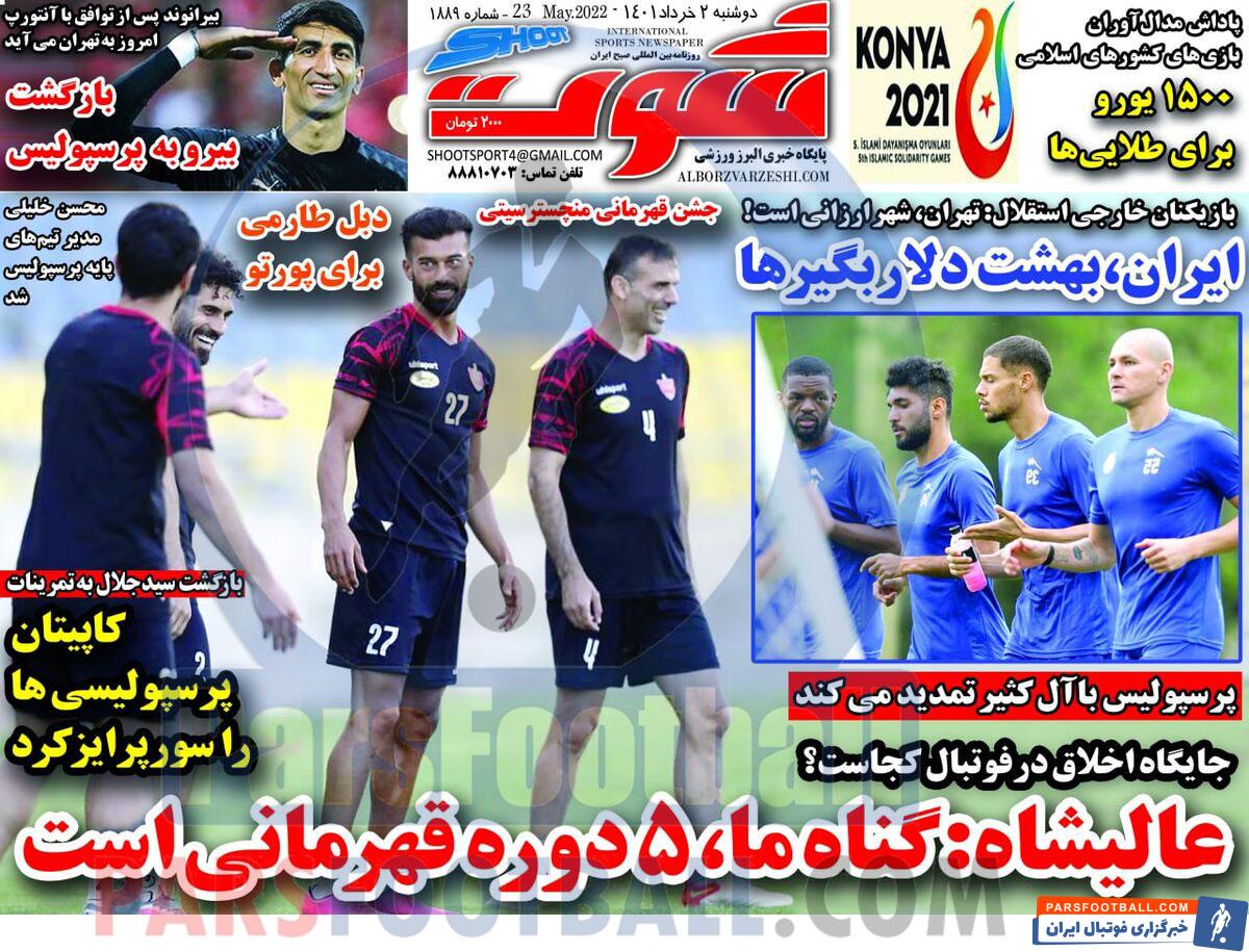 عناوین روزنامه شوت دوشنبه ۲ خرداد ماه به شرح زیر است :