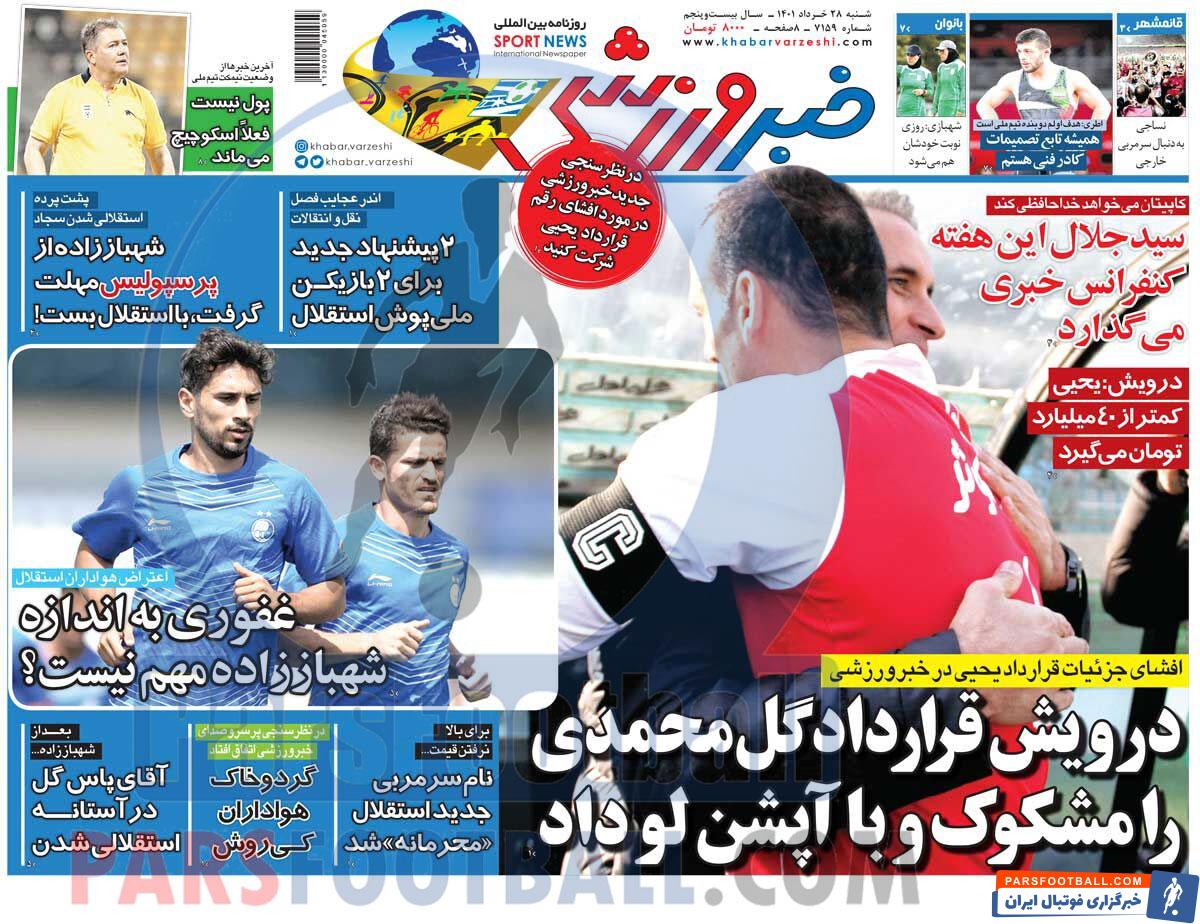 عناوین روزنامه خبر ورزشی شنبه ۲۸ خرداد ماه به شرح زیر است :