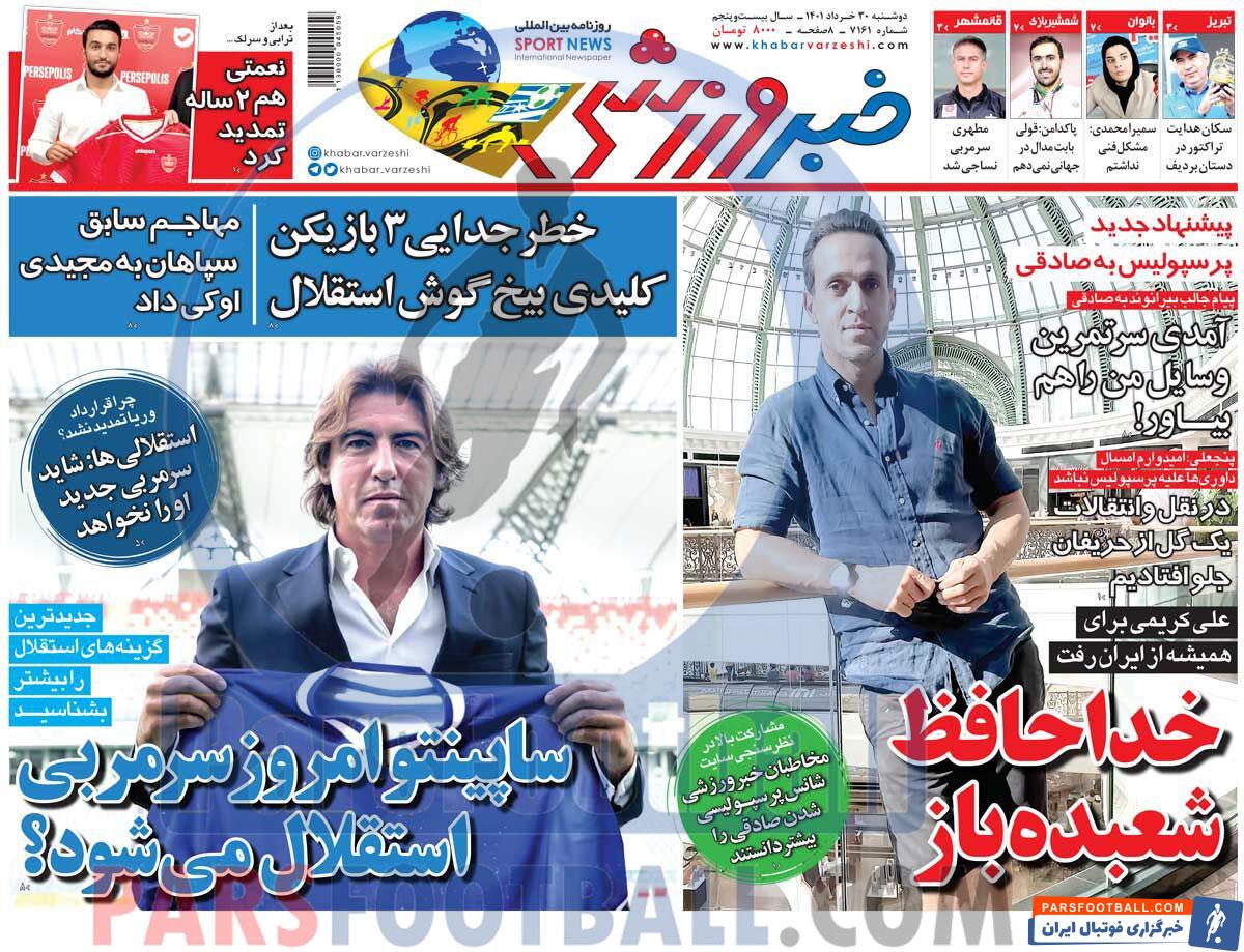 عناوین روزنامه خبر ورزشی دوشنبه ۳۰ خرداد ماه به شرح زیر است :