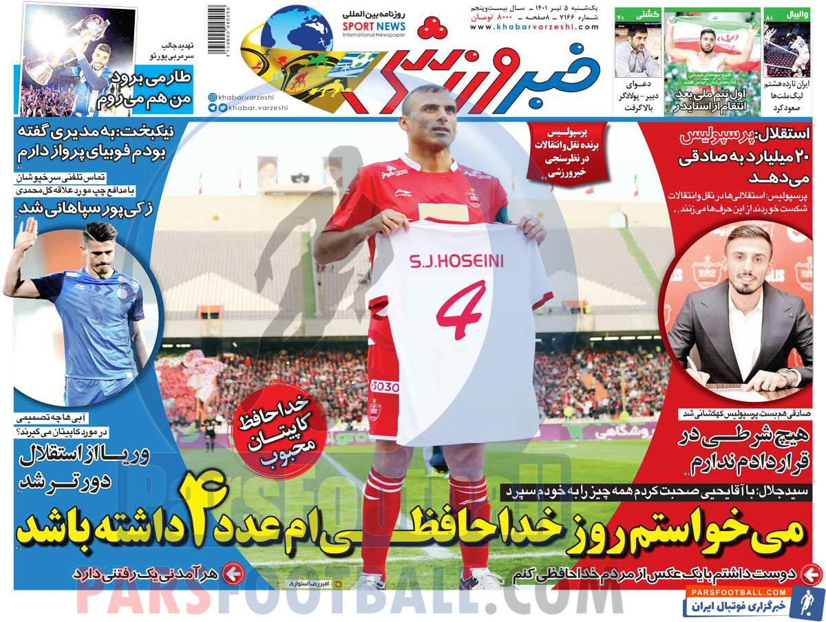 عناوین روزنامه خبر ورزشی یکشنبه ۵ تیر ماه به شرح زیر است :