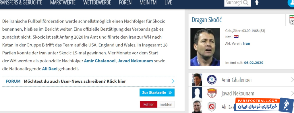به همین خاطر سایت «ترانسفر مارکت» به برکناری اسکوچیچ از مربیگری تیم ملی ایران ۴ ماه قبل از آغاز جام جهانی ۲۰۲۲ پرداخت و ۳ گزینه ایرانی برای جانشینی او مطرح کرد.