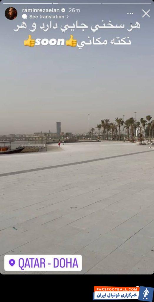 رامین رضاییان که این روزها در قطر به سر می برد و به تمریناتش ادامه می دهد، طبق روال معمول در اینستاگرام فعال است.