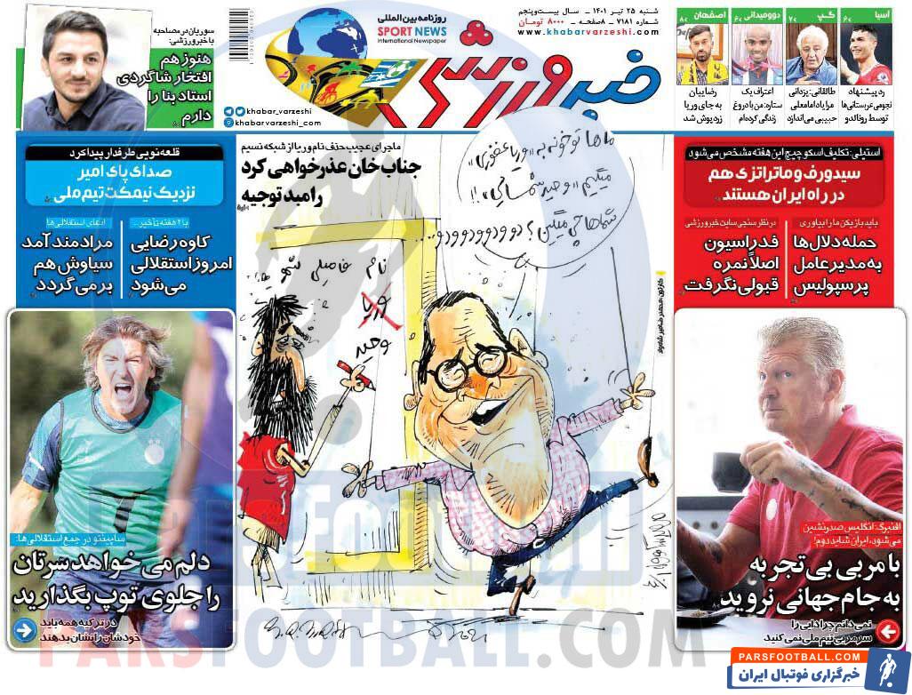 عناوین روزنامه خبر ورزشی شنبه ۲۵ تیر ماه به شرح زیر است :