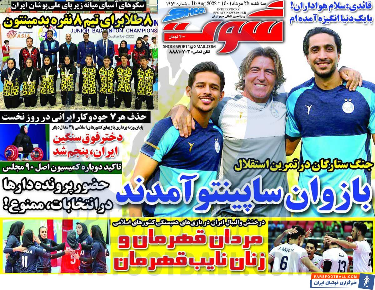 عناوین روزنامه شوت سه شنبه ۲۵ مرداد ماه به شرح زیر است :