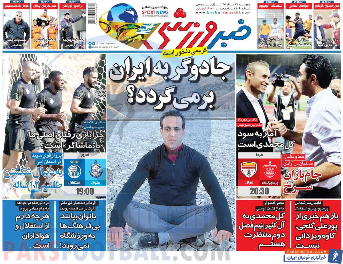 عناوین روزنامه خبر ورزشی پنجشنبه ۲۷ مرداد ماه به شرح زیر است :