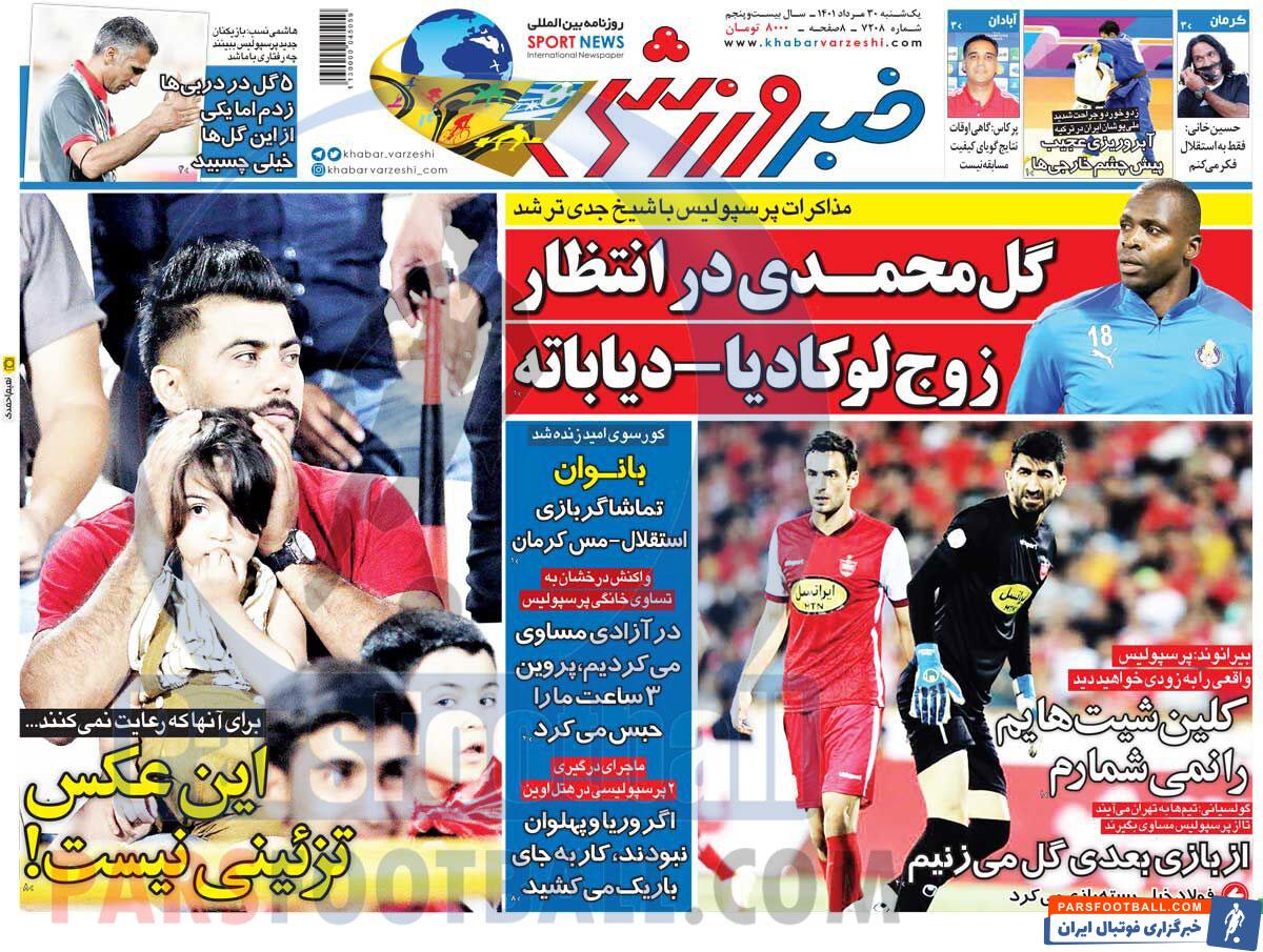 عناوین روزنامه خبر ورزشی یکشنبه ۳۰ مرداد ماه به شرح زیر است :