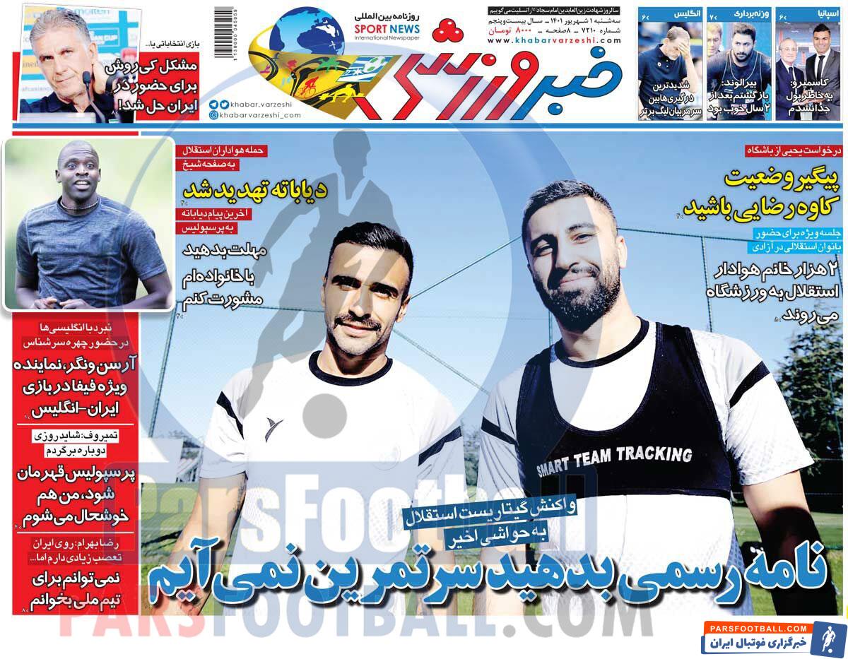مرور عناوین مهم روزنامه خبر ورزشی سه شنبه 1 شهریور ماه سال 1401