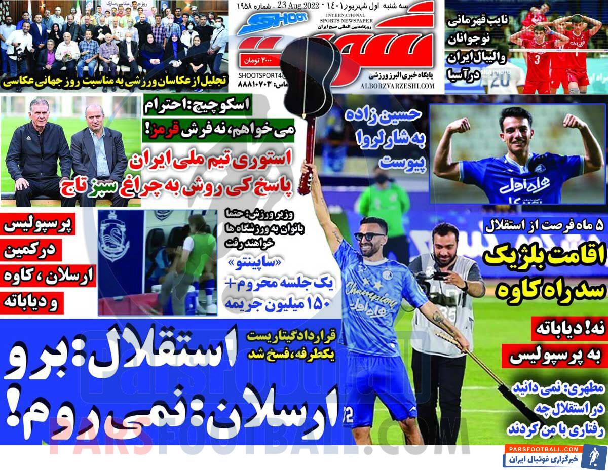 عناوین روزنامه شوت سه شنبه ۱ شهریور ماه به شرح زیر است :