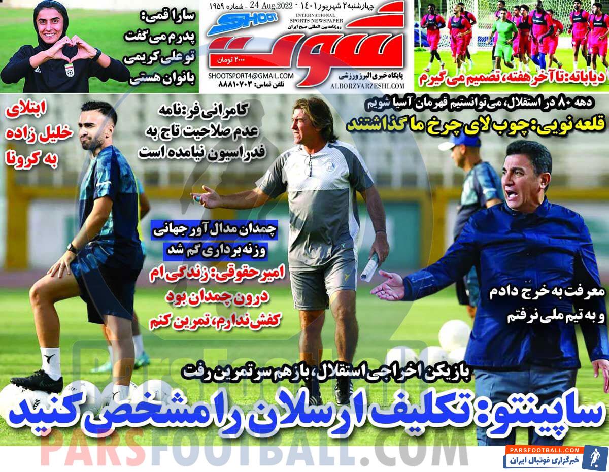 عناوین روزنامه شوت چهارشنبه ۲ شهریور ماه به شرح زیر است :