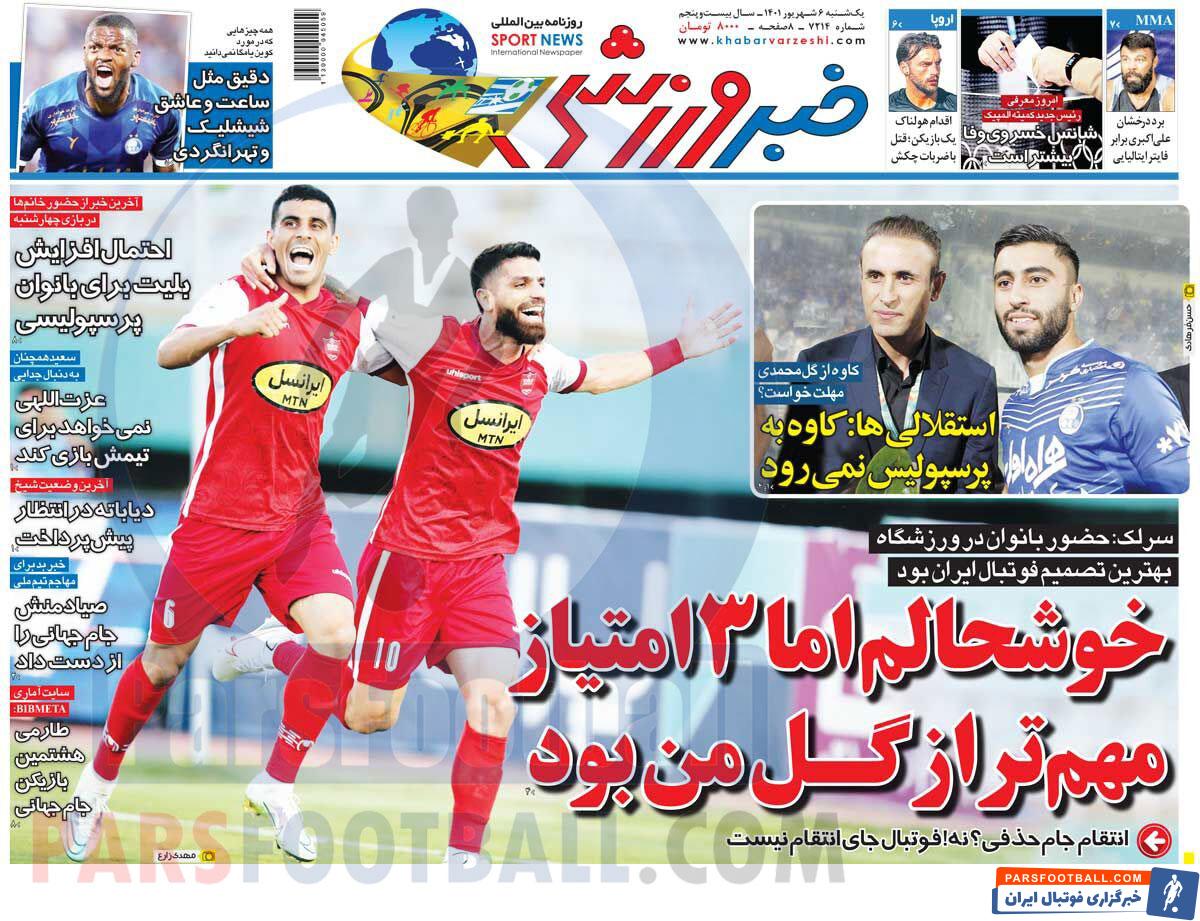عناوین روزنامه خبر ورزشی یکشنبه ۶ شهریور ماه به شرح زیر است :