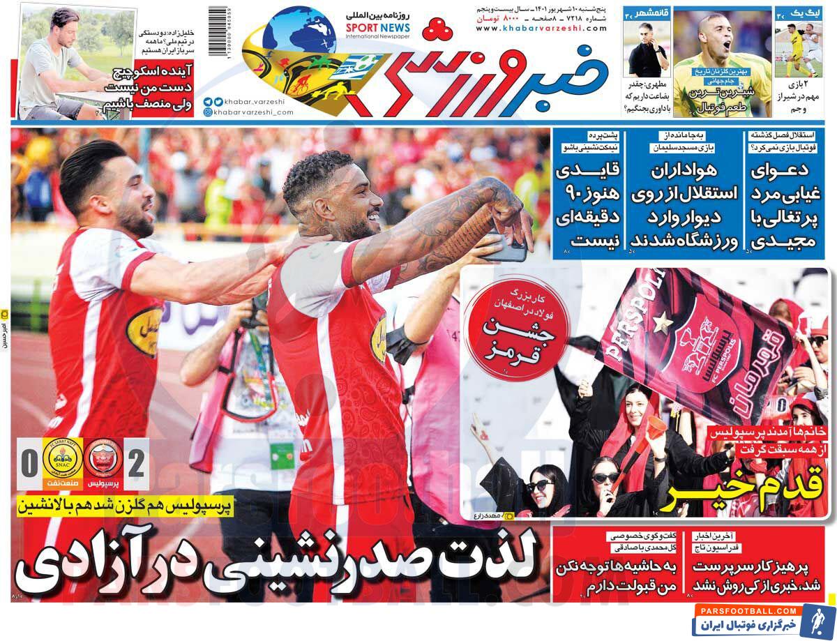عناوین روزنامه خبر ورزشی پنجشنبه ۱۰ شهریور ماه به شرح زیر است :