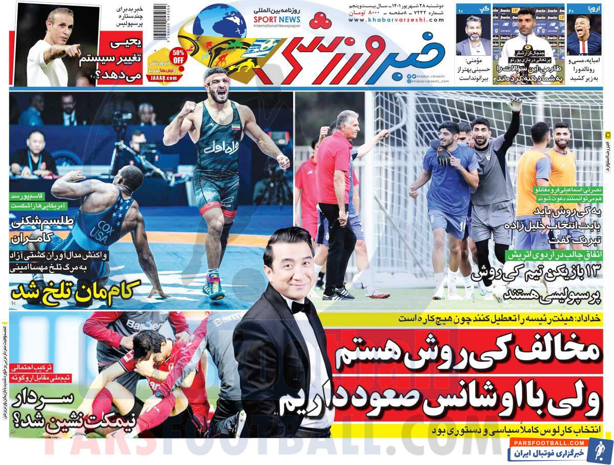 مرور عناوین مهم روزنامه خبر ورزشی دوشنبه 28 شهریور ماه سال 1401