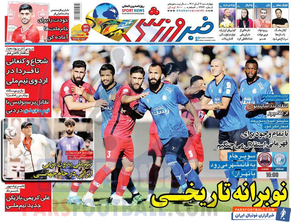 مرور عناوین مهم روزنامه خبر ورزشی چهارشنبه 11 آبان ماه سال 1401