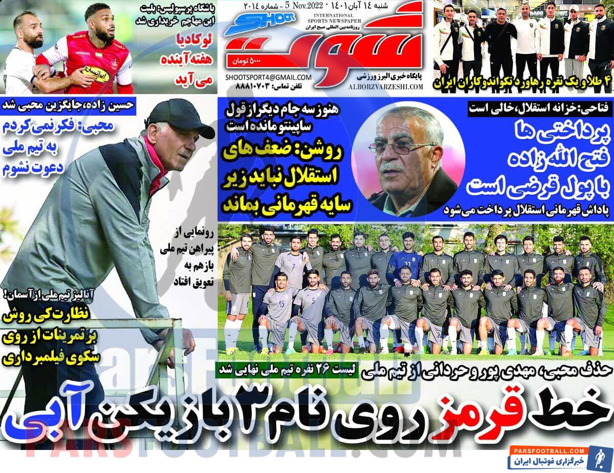 عناوین روزنامه شوت شنبه ۱۴ آبان ماه به شرح زیر است :