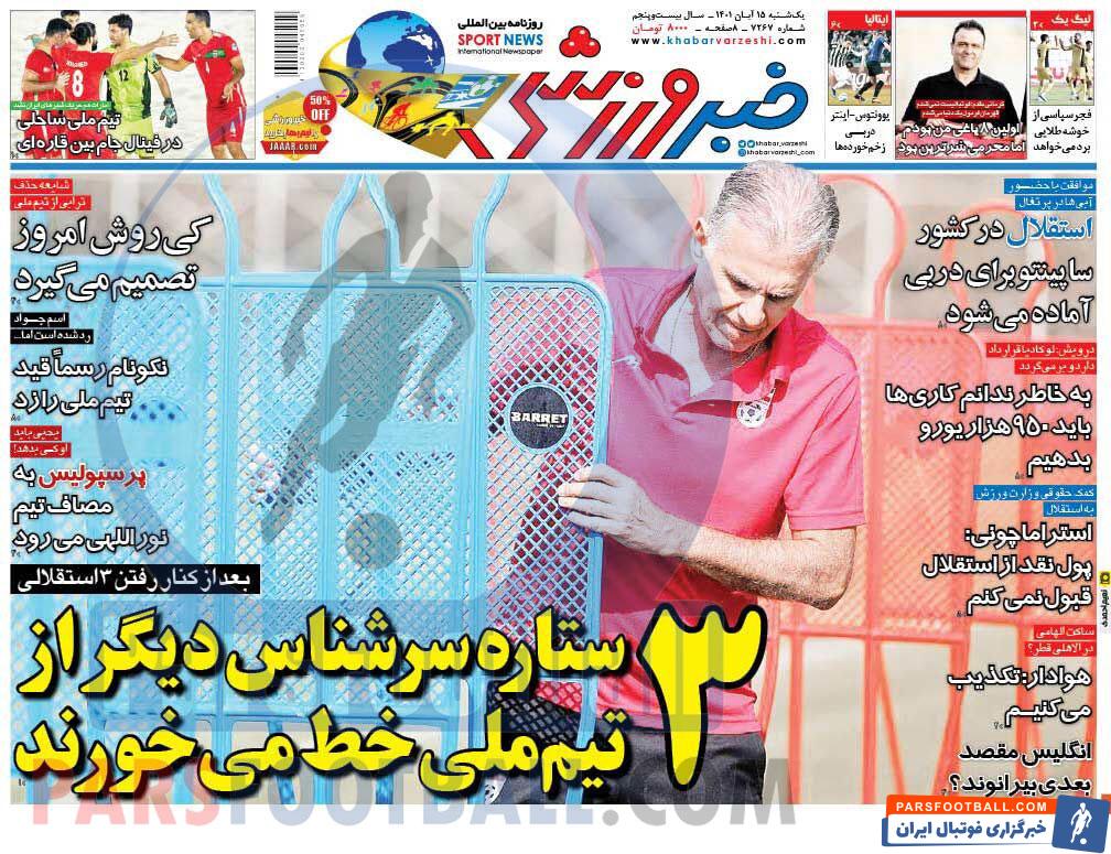 عناوین روزنامه خبر ورزشی یکشنبه ۱۵ آبان ماه به شرح زیر است :