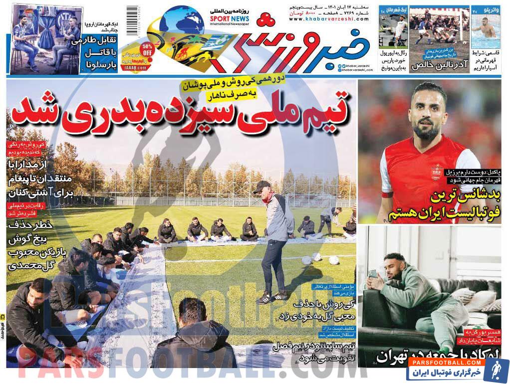 عناوین روزنامه خبر ورزشی سه شنبه ۱۷ آبان ماه به شرح زیر است :