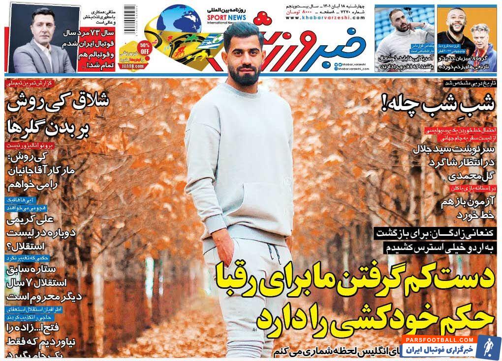 عناوین روزنامه خبر ورزشی چهارشنبه ۱۸ آبان ماه به شرح زیر است :