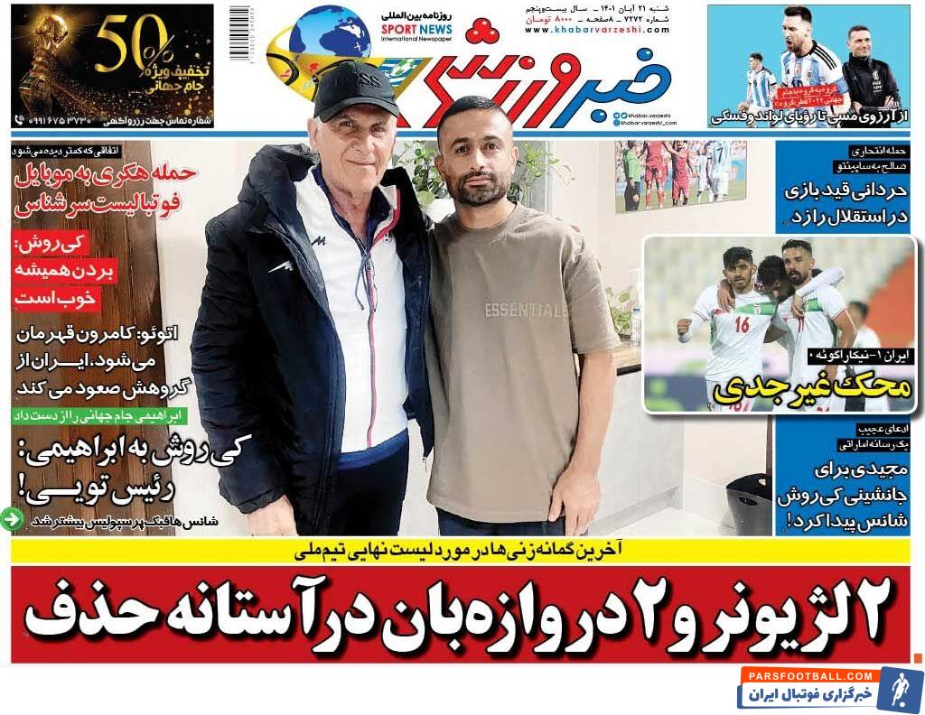 مرور عناوین مهم روزنامه خبر ورزشی شنبه 21 آبان ماه سال 1401