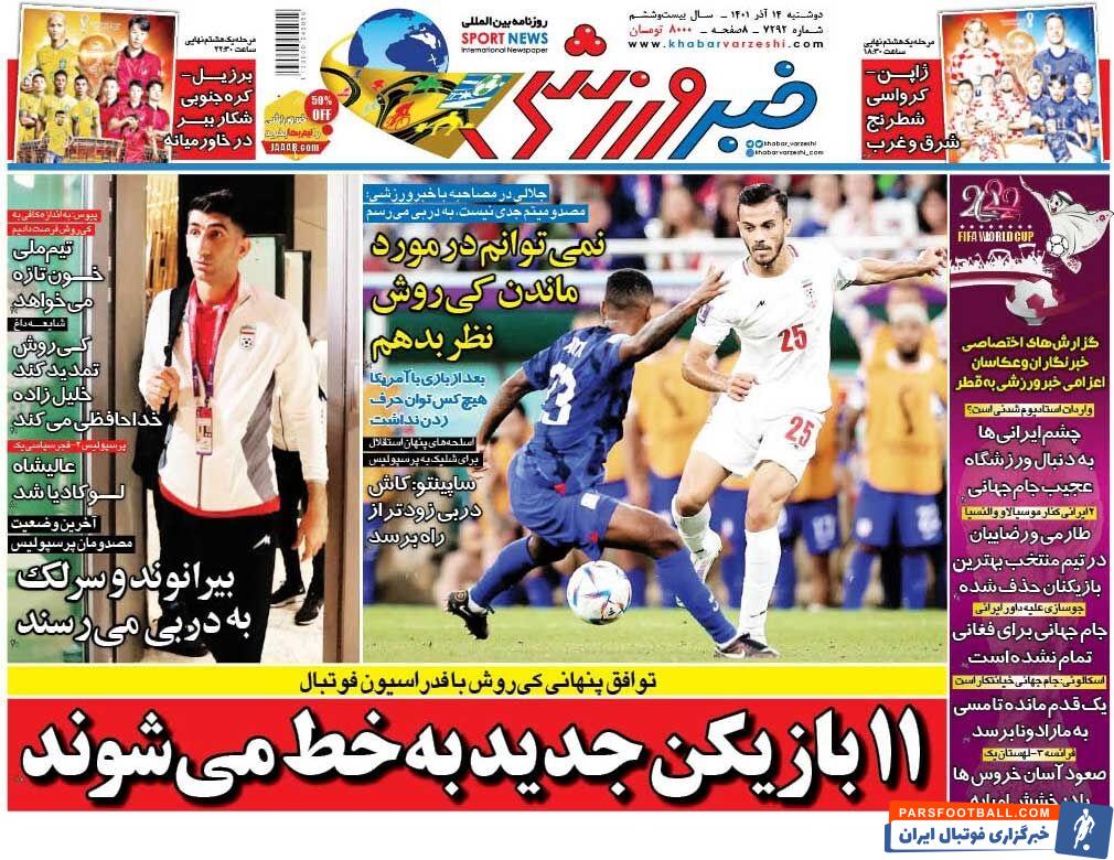 مرور عناوین مهم روزنامه خبر ورزشی دوشنبه 14 آذر ماه سال 1401