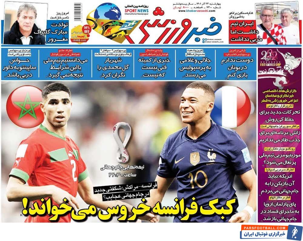 مرور عناوین مهم روزنامه خبر ورزشی چهارشنبه 23 آذر ماه سال 1401