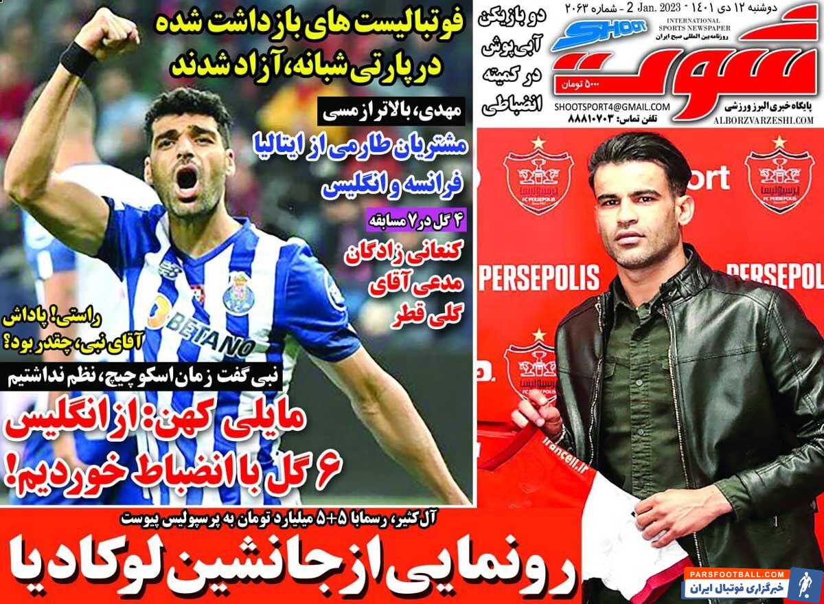 عناوین روزنامه شوت دوشنبه ۱۲ دی ماه به شرح زیر است :