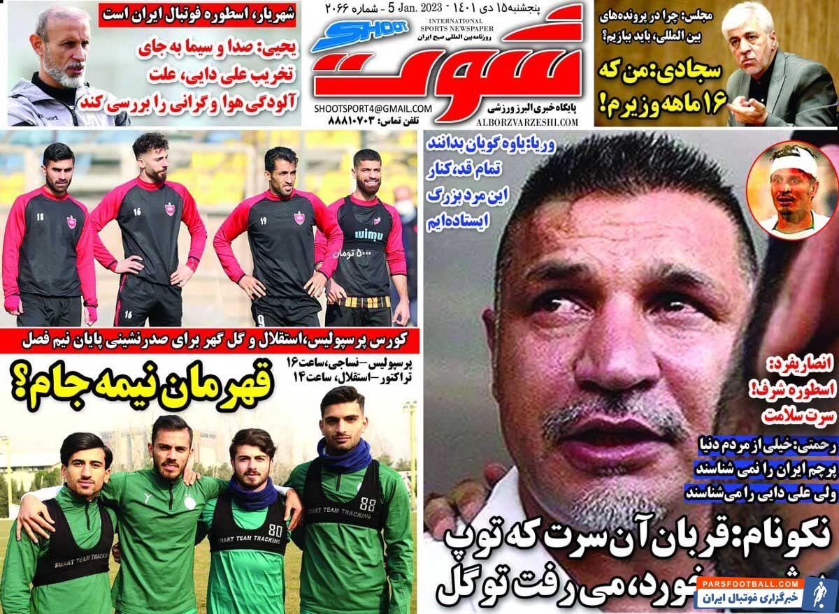 عناوین روزنامه شوت پنجشنبه ۱۵ دی ماه به شرح زیر است :