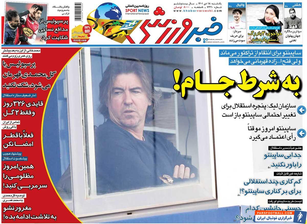 عناوین روزنامه خبر ورزشی یکشنبه ۱۸ دی ماه به شرح زیر است :