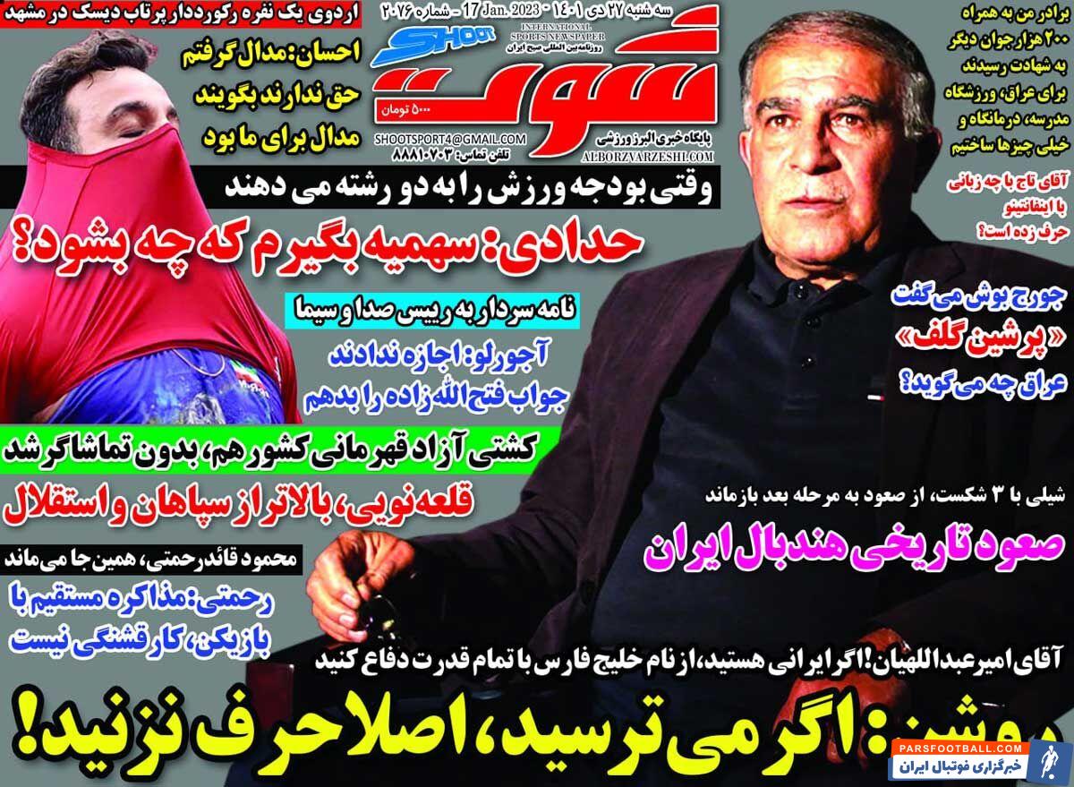 عناوین روزنامه شوت سه شنبه ۲۷ دی ماه به شرح زیر است :