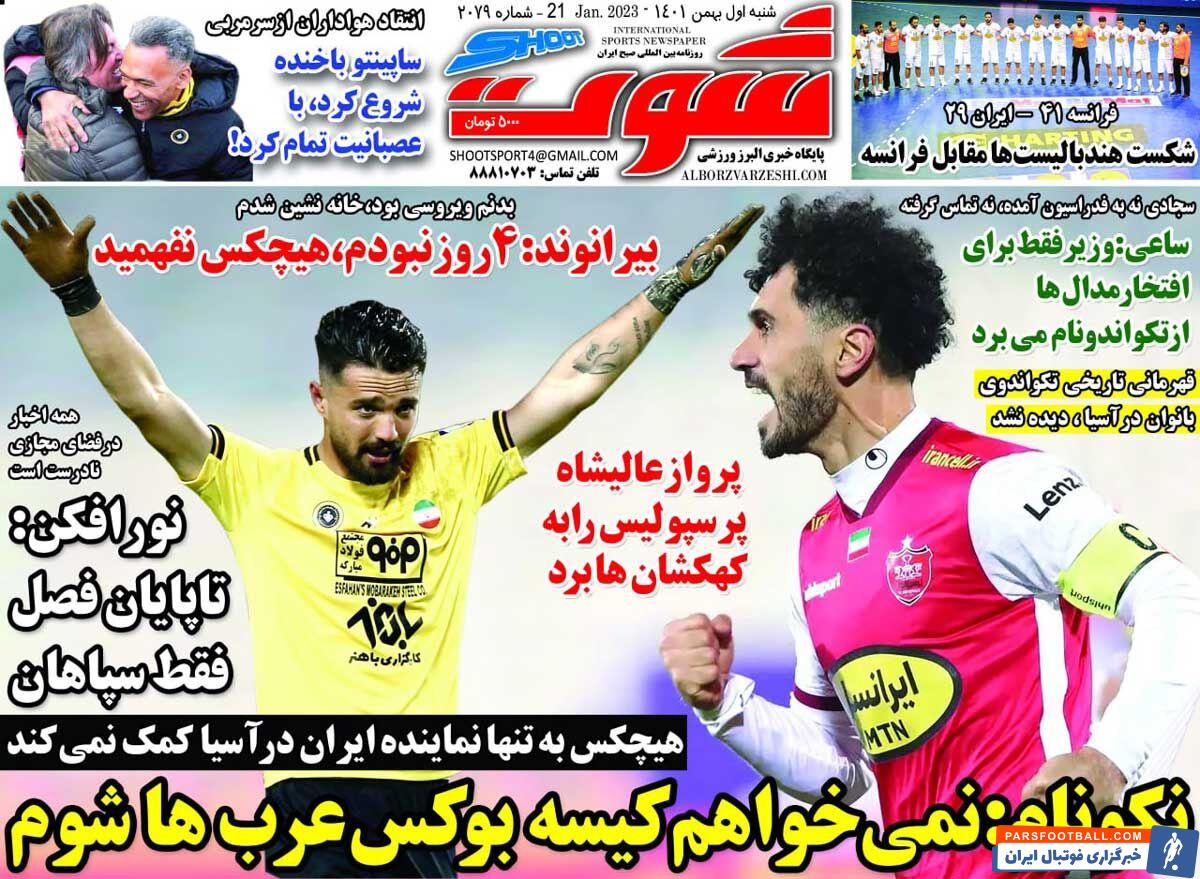 عناوین روزنامه شوت شنبه ۱ بهمن ماه به شرح زیر است :