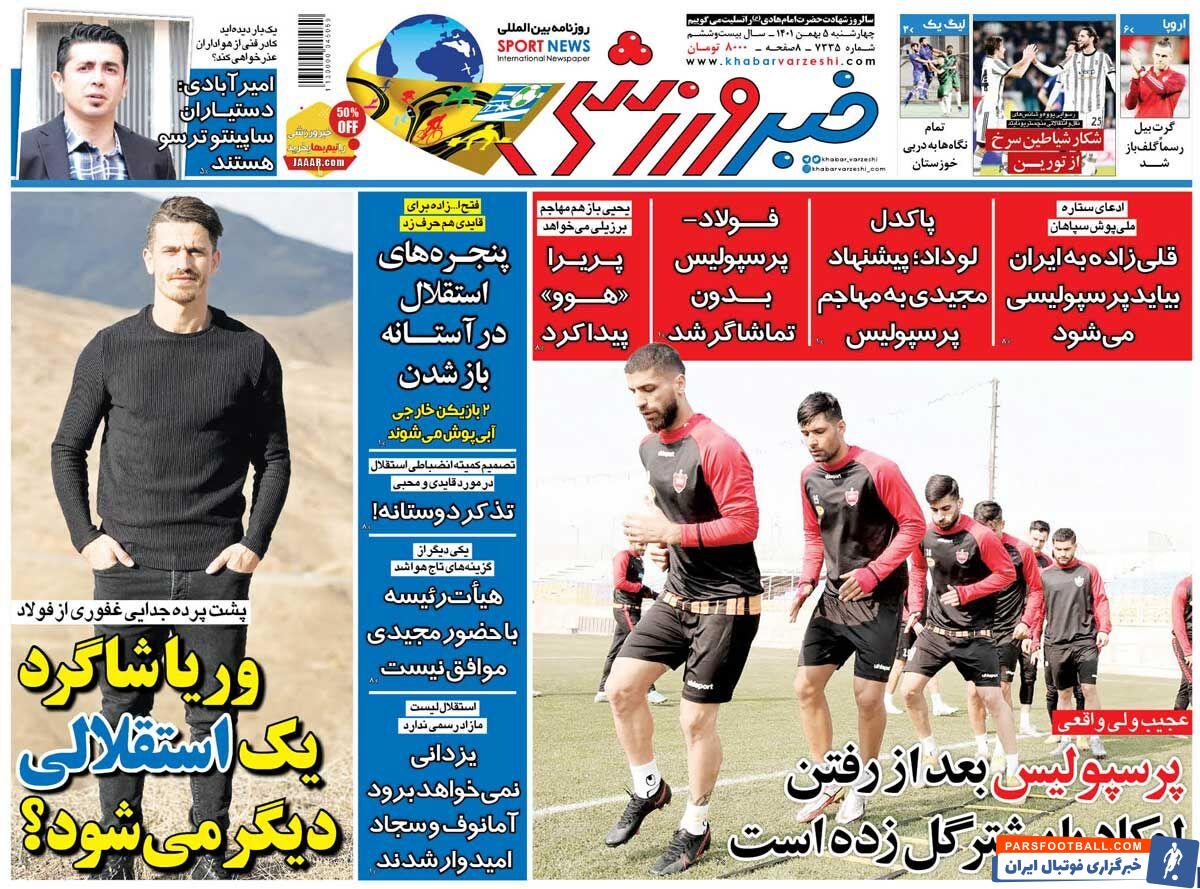 عناوین روزنامه خبر ورزشی چهارشنبه ۵ بهمن ماه به شرح زیر است :