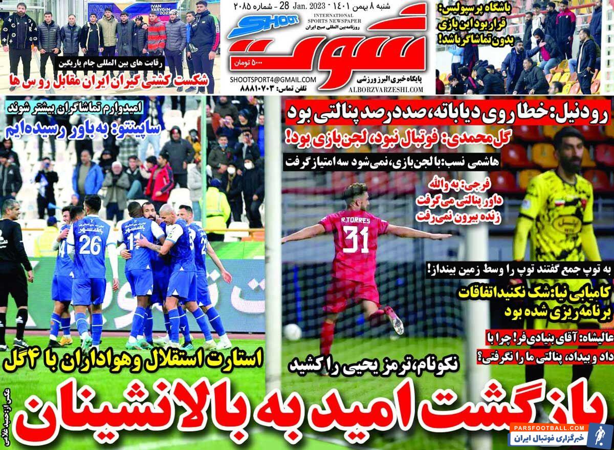عناوین روزنامه شوت شنبه ۸ بهمن ماه به شرح زیر است :