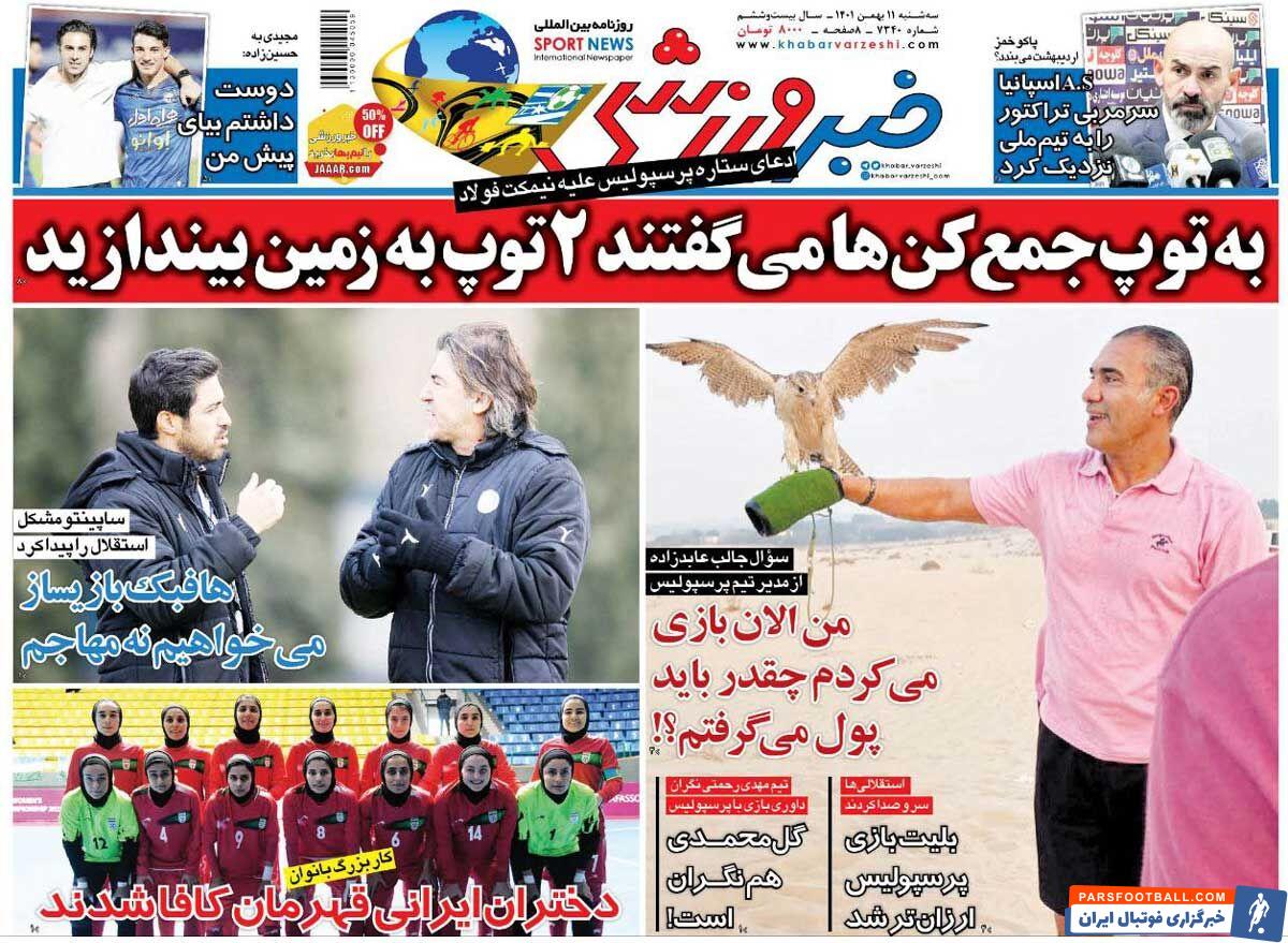 عناوین روزنامه خبر ورزشی سه شنبه ۱۱ بهمن ماه به شرح زیر است :