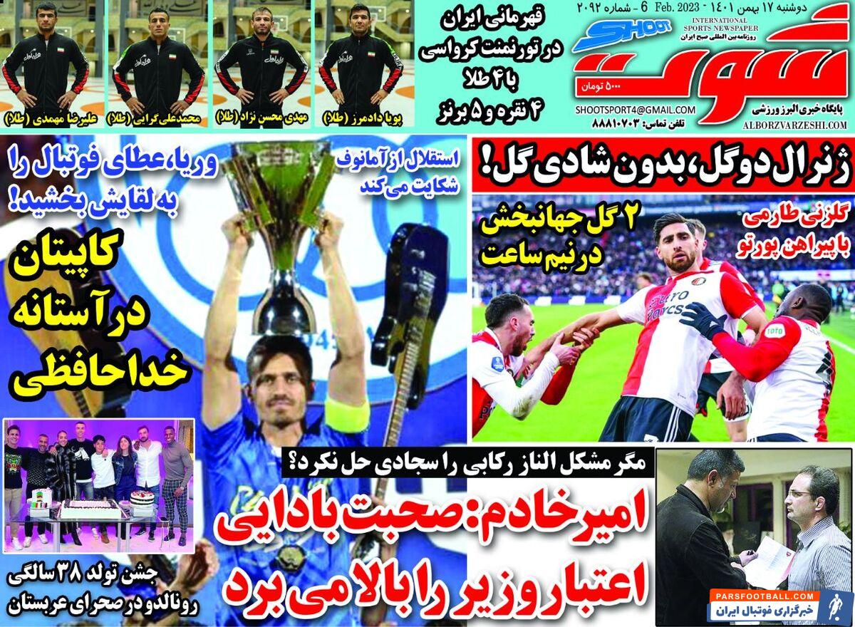 عناوین روزنامه شوت دوشنبه ۱۷ بهمن ماه به شرح زیر است :