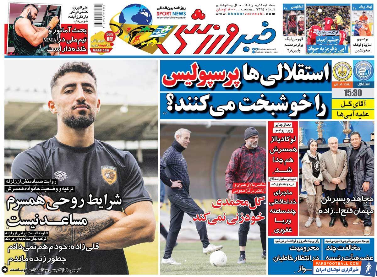 مرور عناوین مهم روزنامه خبر ورزشی سه شنبه 18 بهمن ماه سال 1401