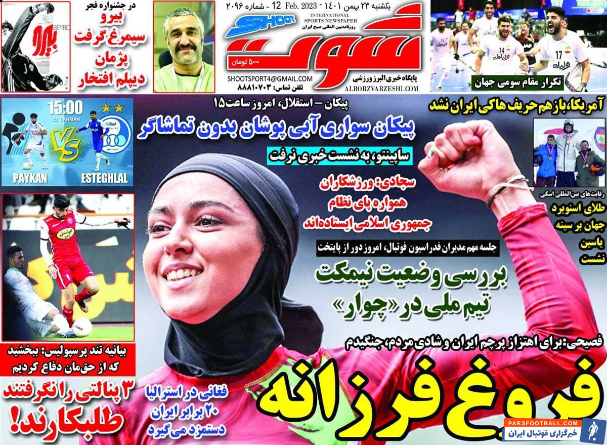 عناوین روزنامه شوت یکشنبه ۲۳ بهمن ماه به شرح زیر است :