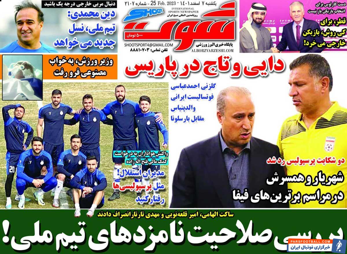 عناوین روزنامه شوت یکشنبه ۷ اسفند ماه به شرح زیر است :