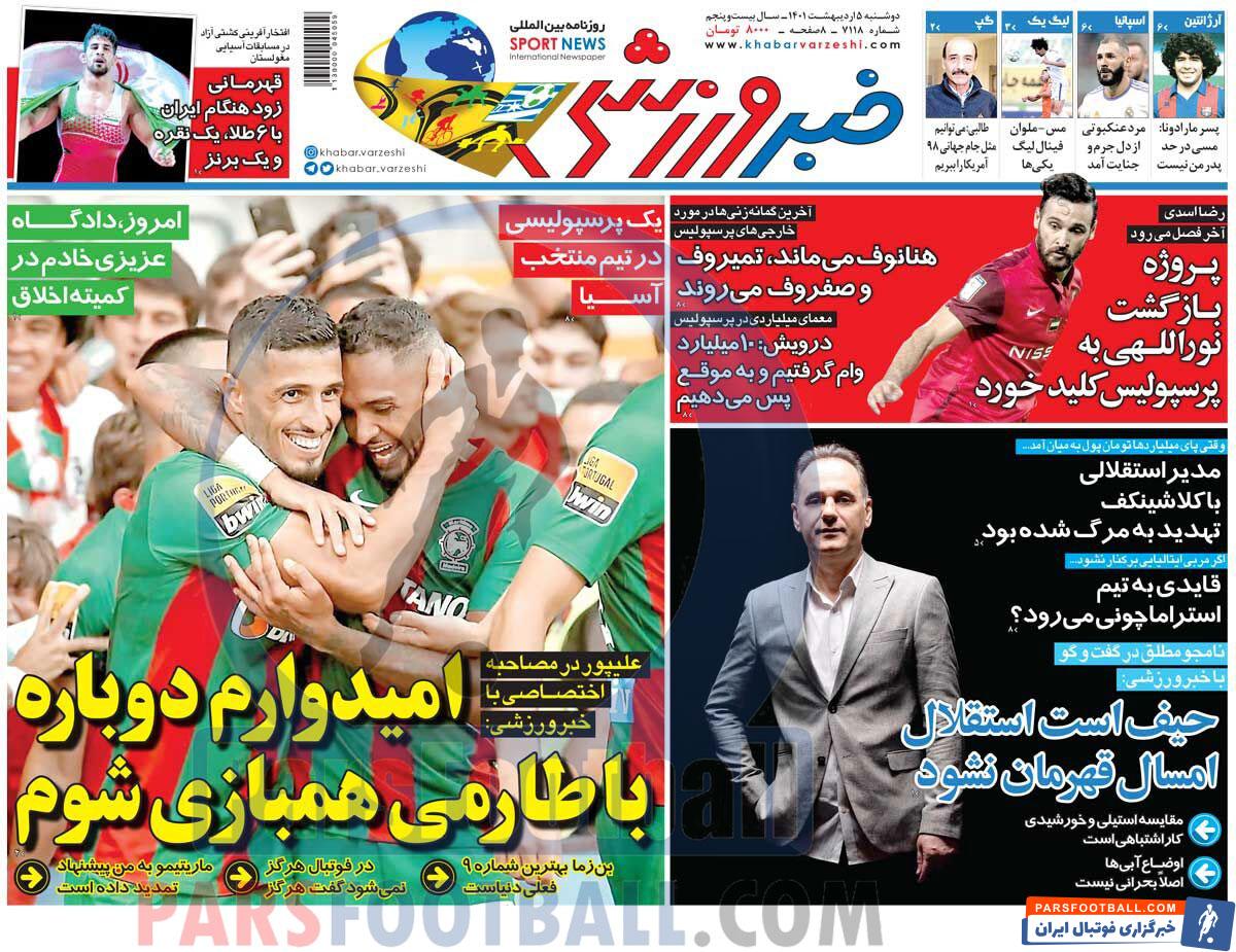 مرور عناوین مهم روزنامه خبر ورزشی دوشنبه 5 اردیبهشت ماه سال 1401