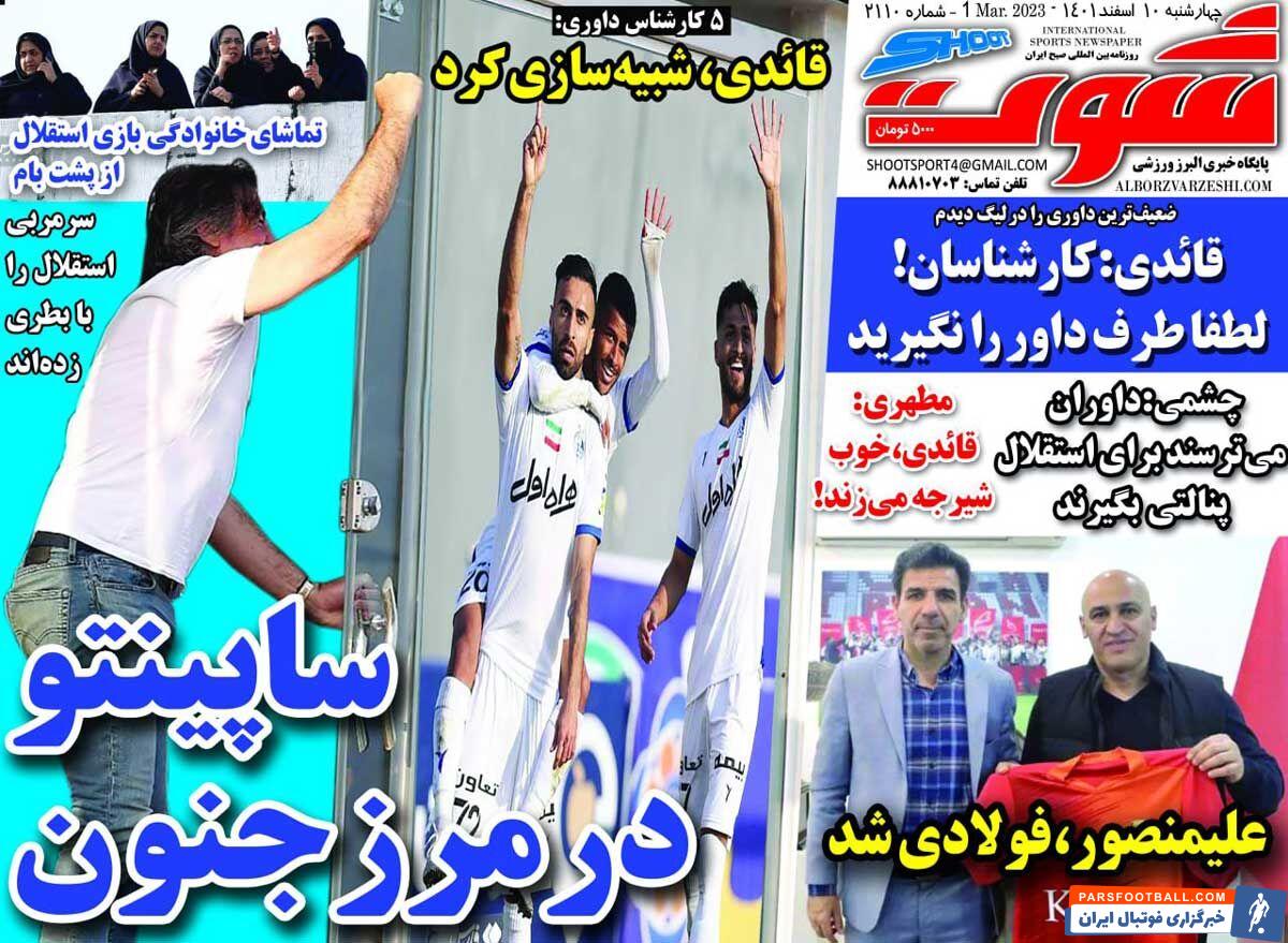 عناوین روزنامه شوت چهارشنبه ۱۰ اسفند ماه به شرح زیر است :