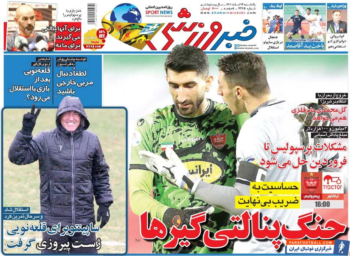 عناوین روزنامه خبر ورزشی یکشنبه ۱۴ اسفند ماه به شرح زیر است :