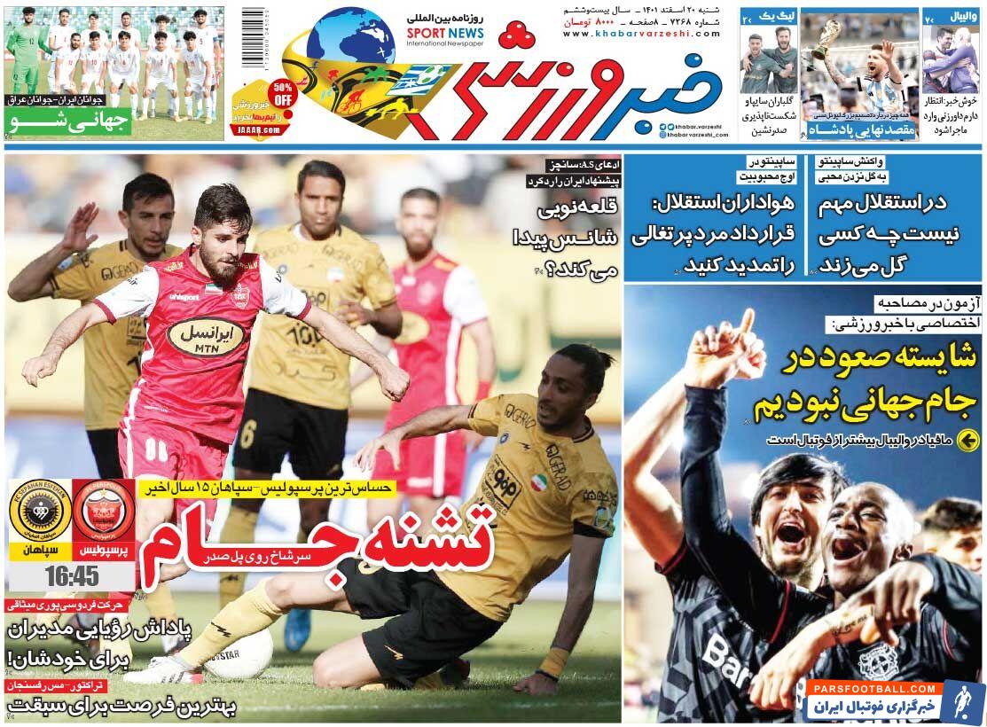 مرور عناوین مهم روزنامه خبر ورزشی شنبه 20 اسفند ماه سال 1401