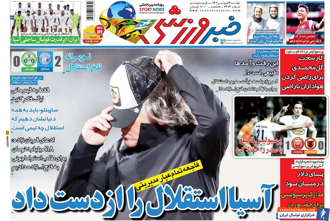 عناوین روزنامه خبر ورزشی دوشنبه ۱۴ فروردین ماه به شرح زیر است :
