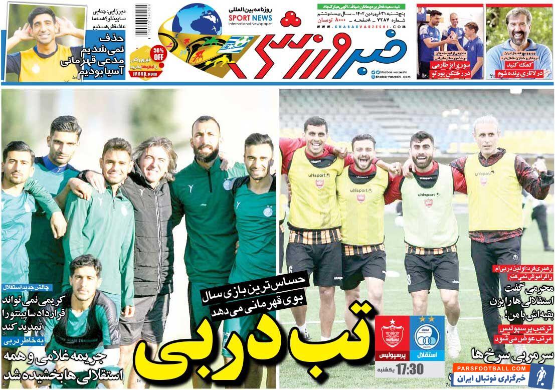 عناوین روزنامه خبر ورزشی پنجشنبه ۳۱ فروردین ماه به شرح زیر است :