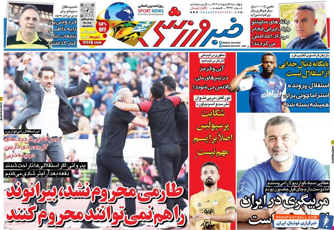 عناوین روزنامه خبر ورزشی پنجشنبه ۷ اردیبهشت ماه به شرح زیر است :