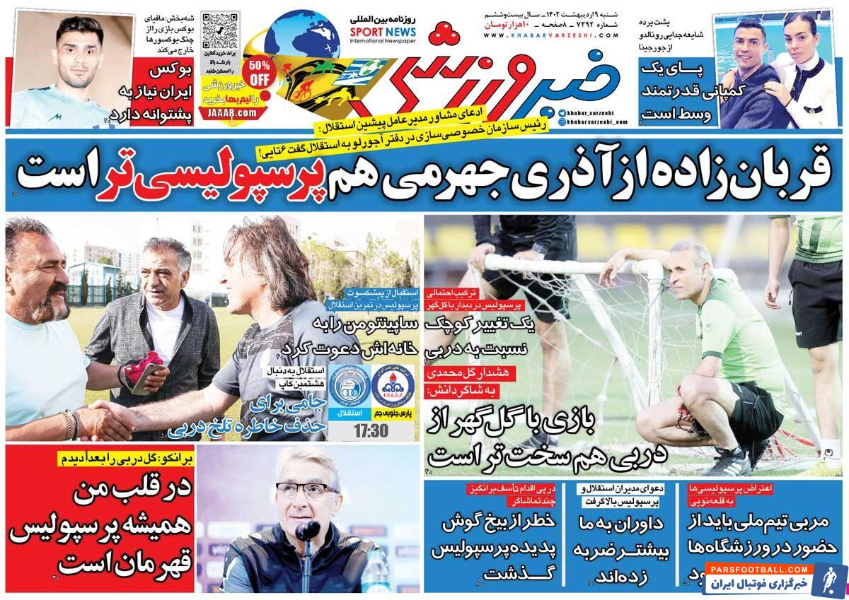 عناوین روزنامه خبر ورزشی چهارشنبه ۹ اردیبهشت ماه به شرح زیر است :