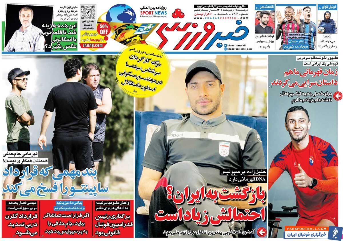 عناوین روزنامه خبر ورزشی دوشنبه ۲۵ اردیبهشت ماه به شرح زیر است :