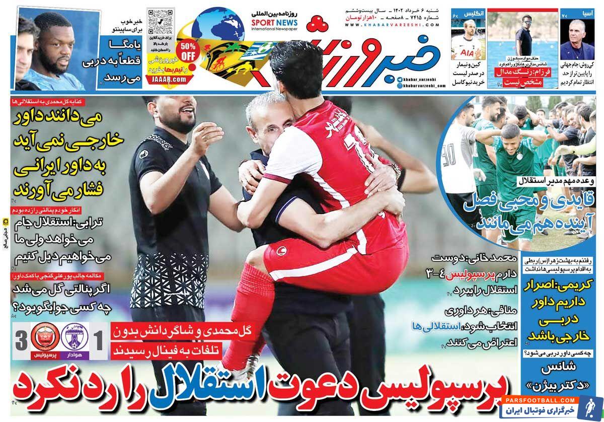 عناوین روزنامه خبر ورزشی شنبه ۶ خرداد ماه به شرح زیر است :