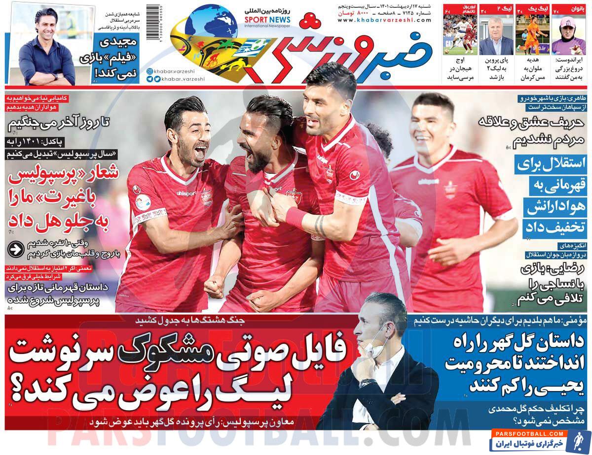 عناوین روزنامه خبر ورزشی شنبه ۱۷ اردیبهشت ماه به شرح زیر است :