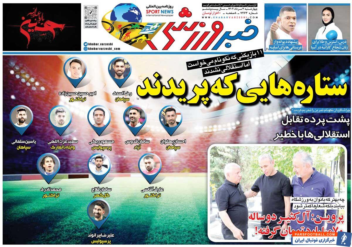عناوین روزنامه خبر ورزشی چهارشنبه ۴ مرداد ماه به شرح زیر است :