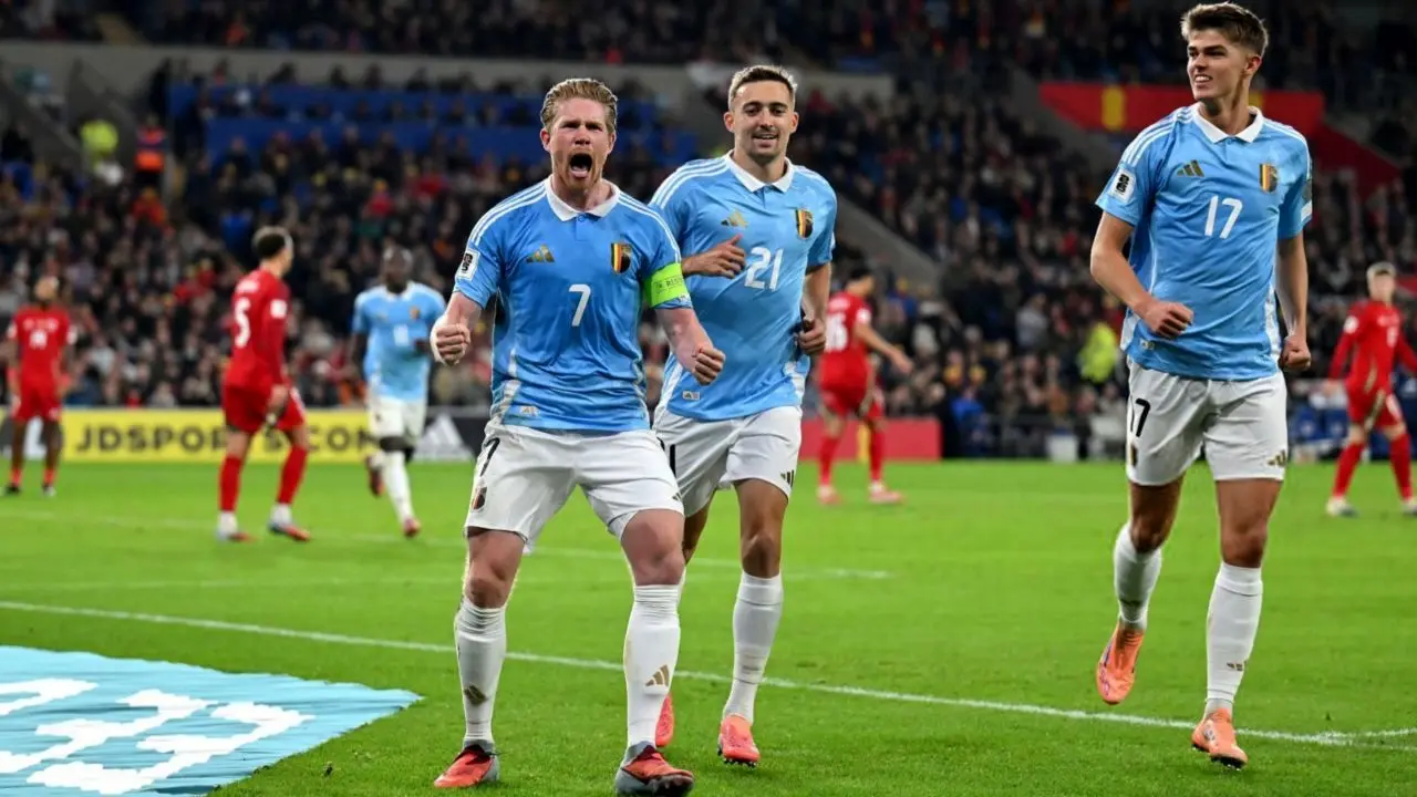 در کاردیف، بلژیک نمایشی متفاوت از دو مدعی دیگر ارائه داد. شاگردان دومنیکو تدسکو با هدایت خیرهکننده کوین دی بروین، بازی برتر و منسجمی برابر ولز داشتند و با نتیجه ۴ بر ۲ پیروز شدند. دو پنالتی موفق از دی بروین در کنار گلهای مونیه و تروسار، اقتدار شیاطین سرخ را به رخ کشید. ولز با گلهای جو رودون و ناتان برودهد دوبار اختلاف را کاهش داد، اما انسجام تاکتیکی و تجربه بالای بلژیکیها اجازه بازگشت را از میزبان گرفت.